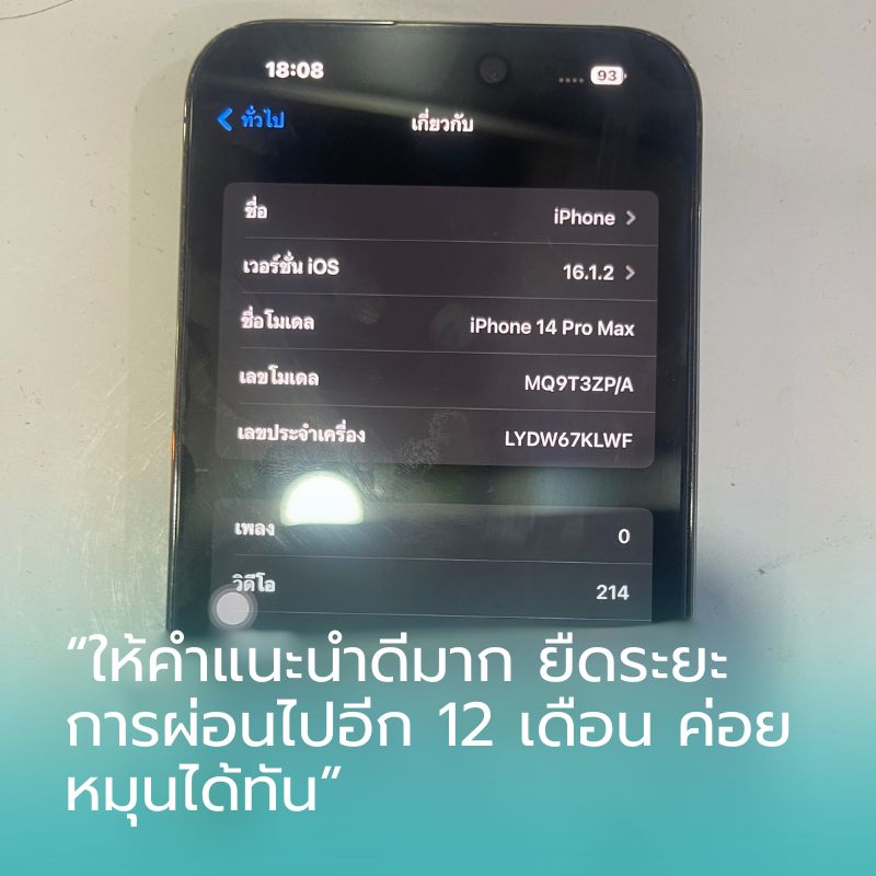 ลูกค้า A ใช้ iPhone 14Pro Max ผ่อนมาแล้ว 8 เดือน ต้องการลดค่างวด จากเดิม 2,500 บาทต่อเดือน เหลือ 1,500 บาท ด้วยการรีไฟแนนซ์โดยยืดเวลาผ่อนเพิ่มอีก 12 เดือน ทำให้สามารถบริหารค่าใช้จ่ายได้ดีขึ้นทันที